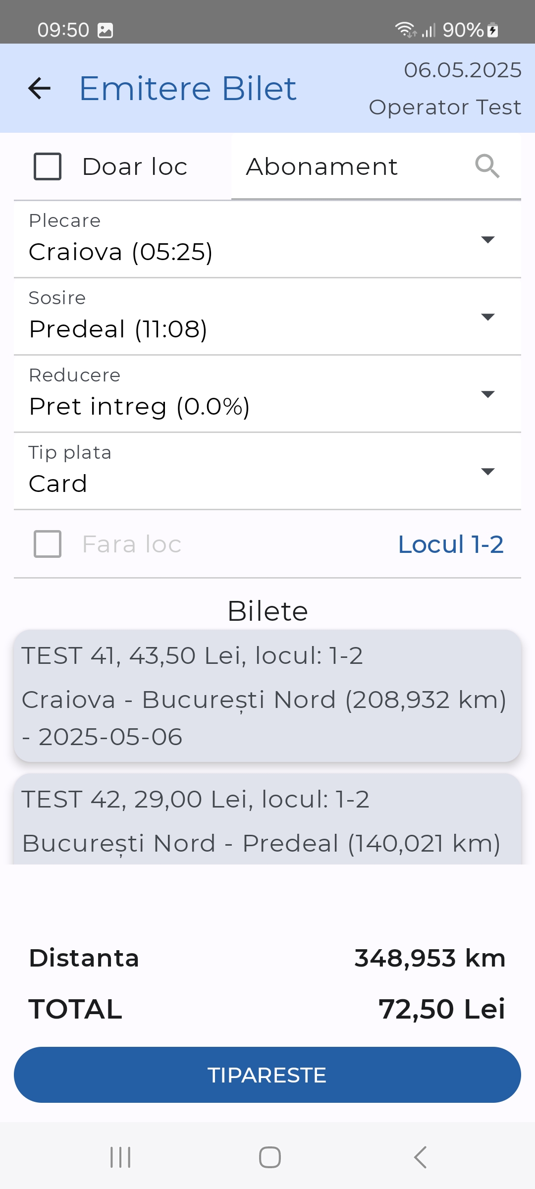 Android native application used by train personel to sell tickets to passengers who doesn't buy online.